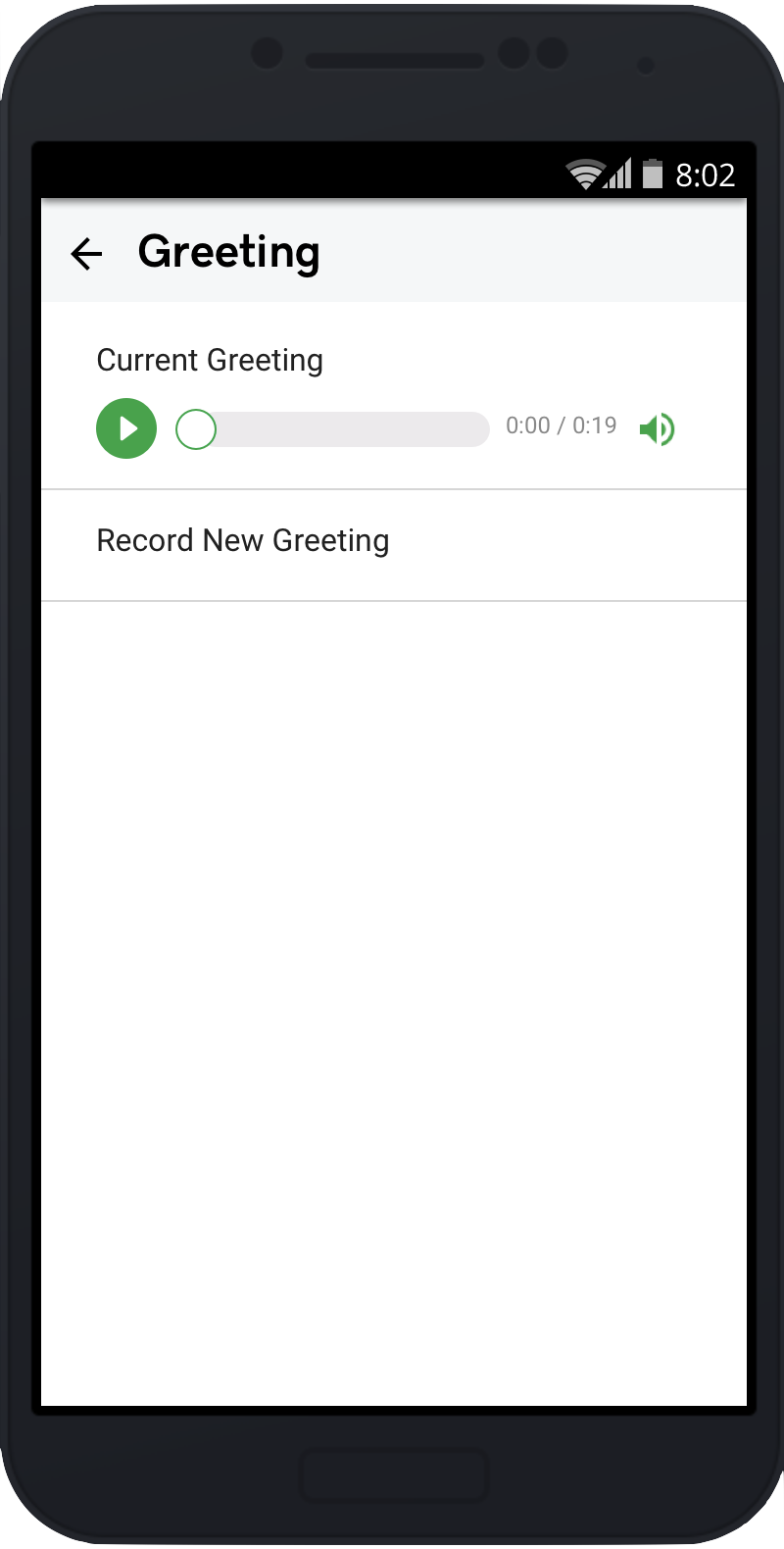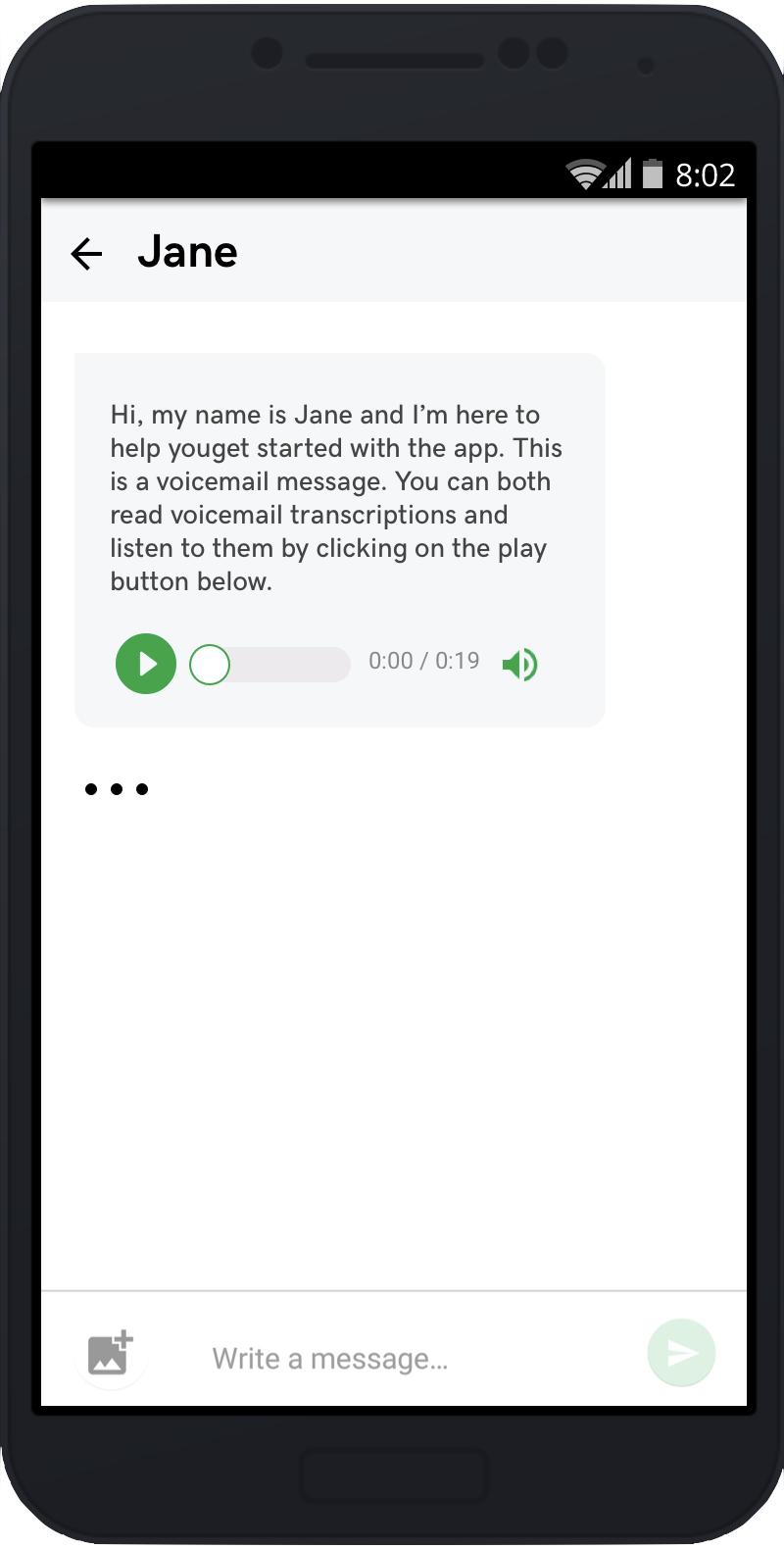 The first thing we wanted our users to know about was the ability to record a custom voicemail. Therefore Jane explains what a voicemail is, and presents one to the user to listen to. Then she gives them an option to set up their voicemail.